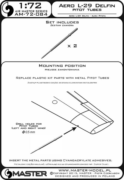 Master (PL) - 1/72 Aero L-29 'Delfin' - Pitot Tubes (designed to be used with Aeroteam, Bilek, Kopro (ex KP), KP Models and Special Hobby kits)