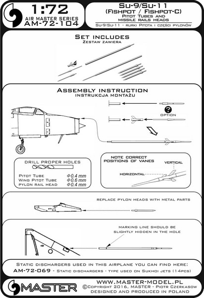 Master (PL) - 1/72 Sukhoi Su-9 / Sukhoi Su-11 (Fishpot / Fishpot C) - Pitot Tubes and missile rails heads