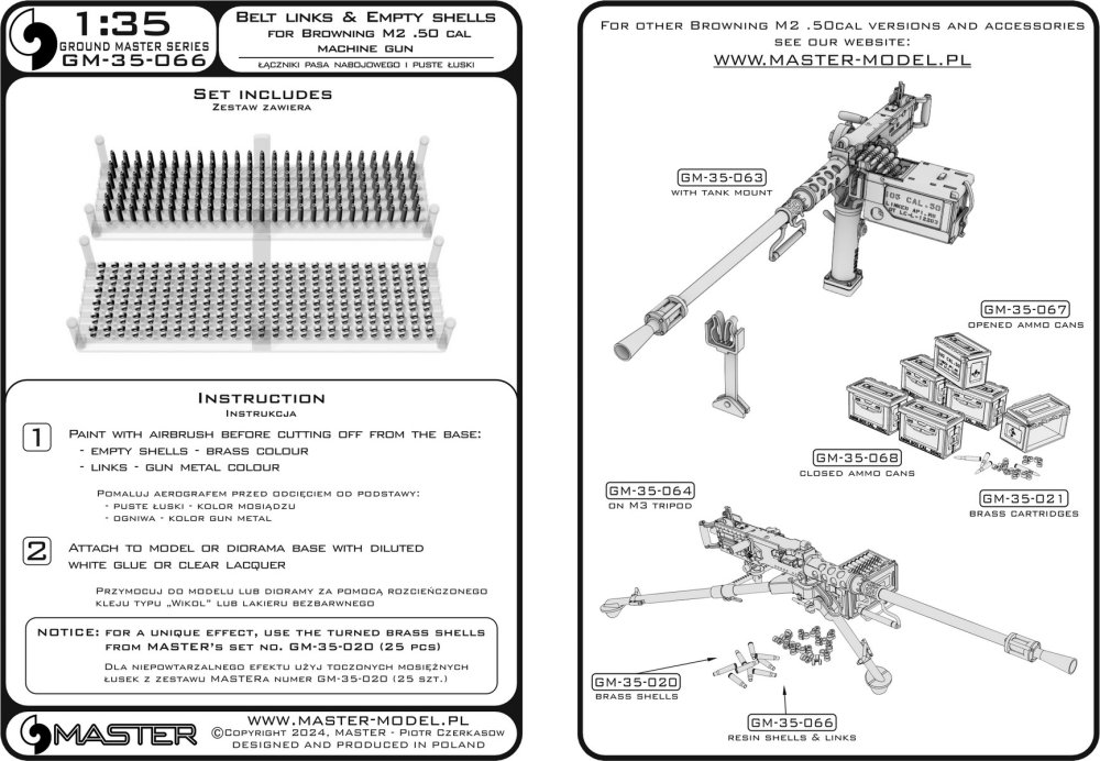 MASTER (PL) - 1/35 Belt link & empty shells Browning M2 .50 cal MG