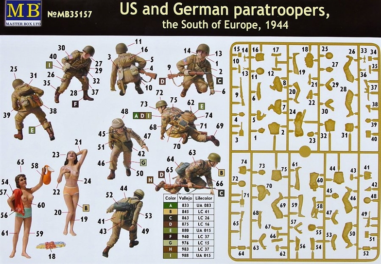 Masterbox - 1/35 US and German paratroopers (6 fig.)