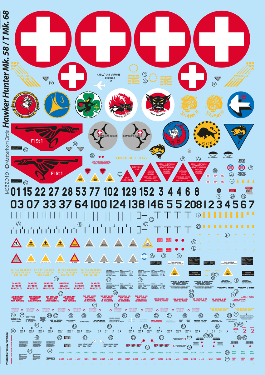 Matherhorn Circle - 1/32 Swiss Air Force Hawker Hunter Mk.58 / T Mk.68 decals
