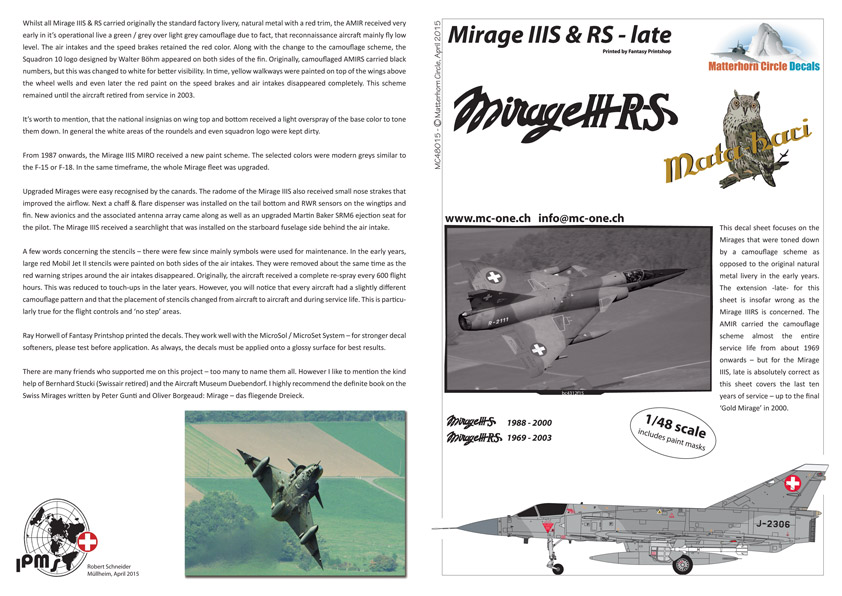 MC-One 1/48 - Mirage IIIS & RS late decals with paint mask