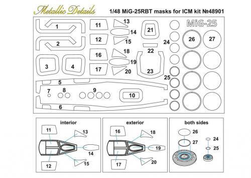Metallic Details - 1/48 Mikoyan MiG-25RBT Masks (for Icm kits)