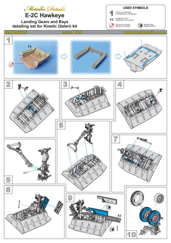 Metallic Details - 1/48 Grumman E-2C Hawkeye Landing gears and bays for Italeri and Kinetic