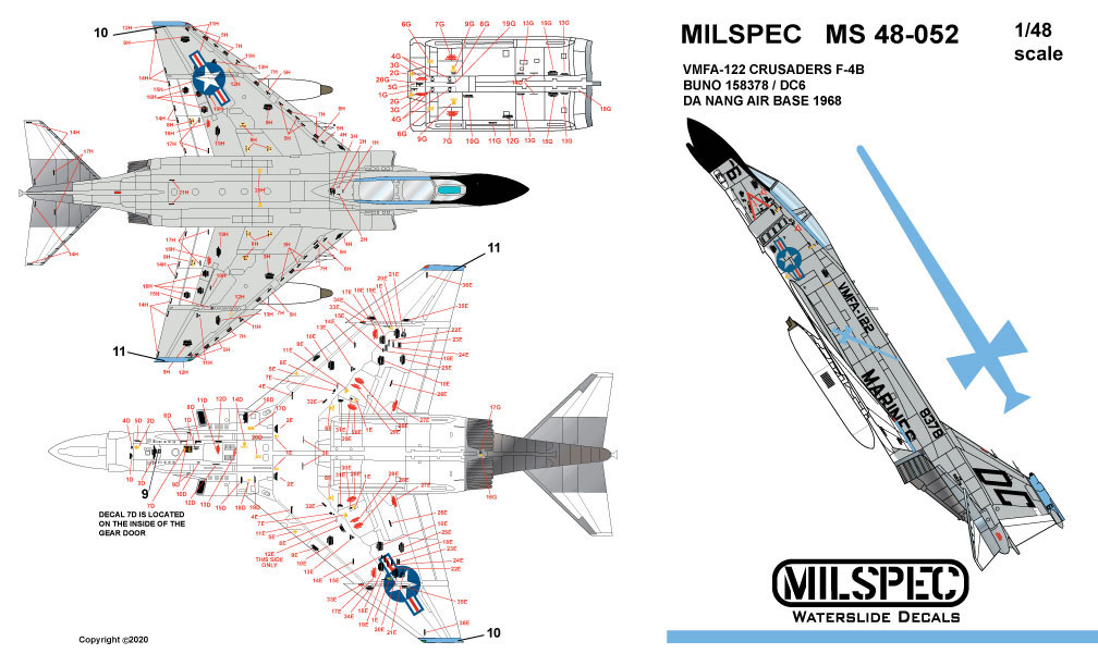 Milspec - 1/48 McDonnell F-4B Phantom VMFA-122 Crusaders Da Nang Air Base 1968