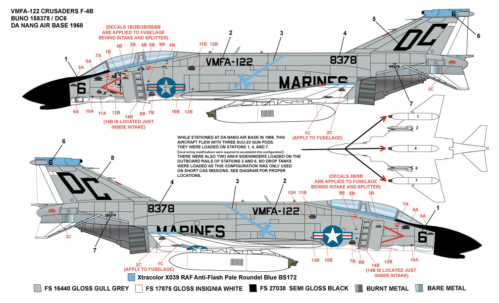 1/48 McDonnell F-4B Phantom VMFA-122 Crusaders Da Nang Air Base
