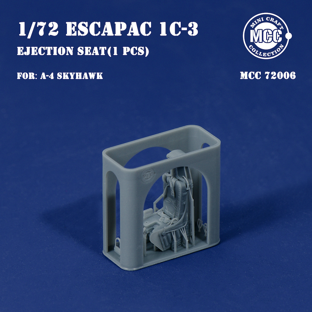Mini Craft Collection - 1/72 Escapac 1C-3 Ejection Seat for A-4 Skyhawk 1pcs. 1 pcs of Escapac 1C-3 ejection seat, For A-4 Skyhawk. All parts are made by 3d-printed. Fits all brands
