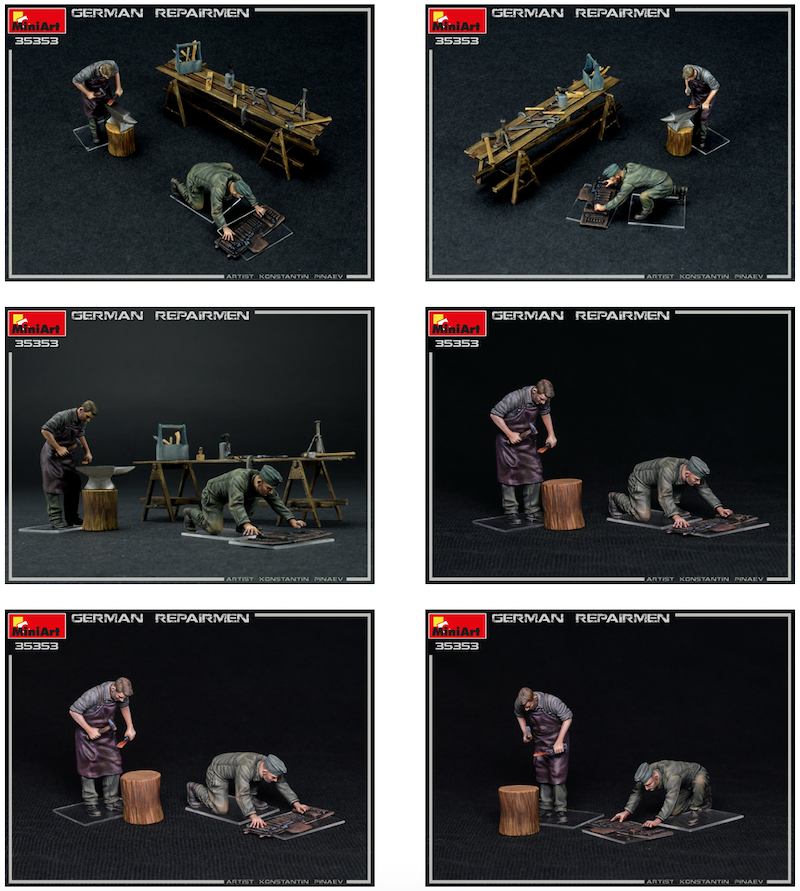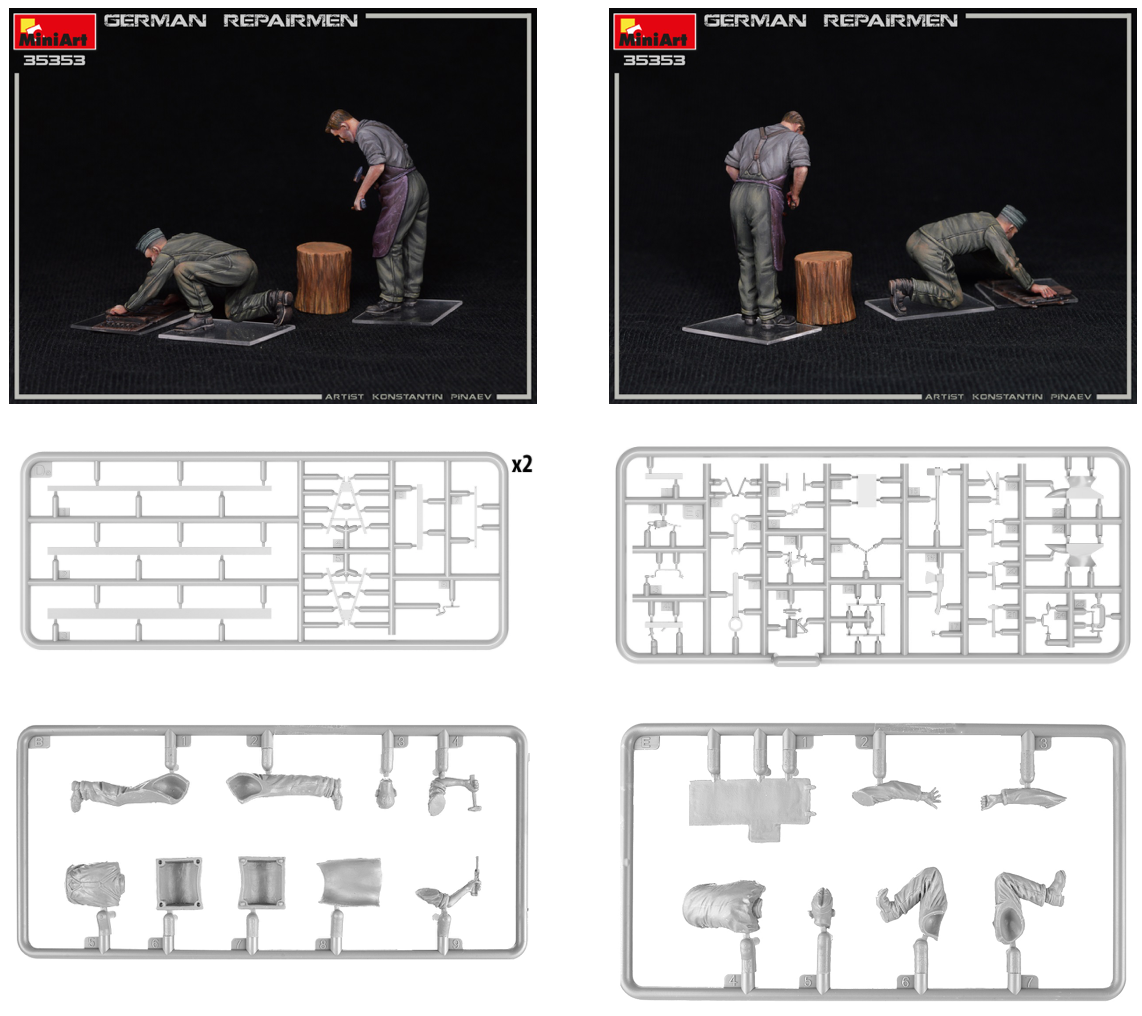 Miniart - 1/35 German repairmen with workbench and assorted tools. Box Contains Models of 2 Figures With Tools