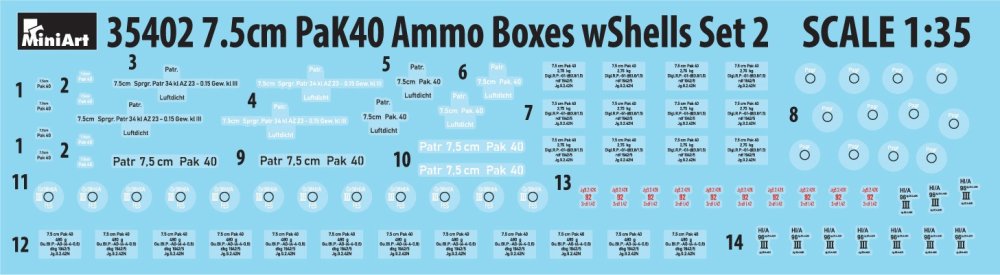 MINIART - 1/35 7.5cm PaK40 Ammo Boxes with Shells Set 2