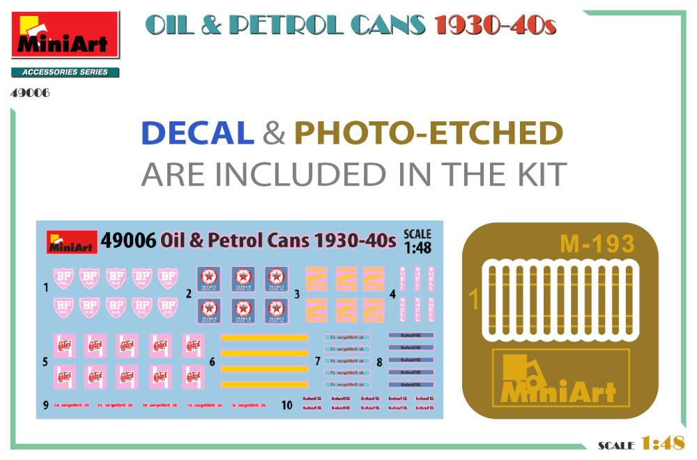MINIART - 1/48 Oil & Petrol Cans 1930-40s (36 pcs., with decals)