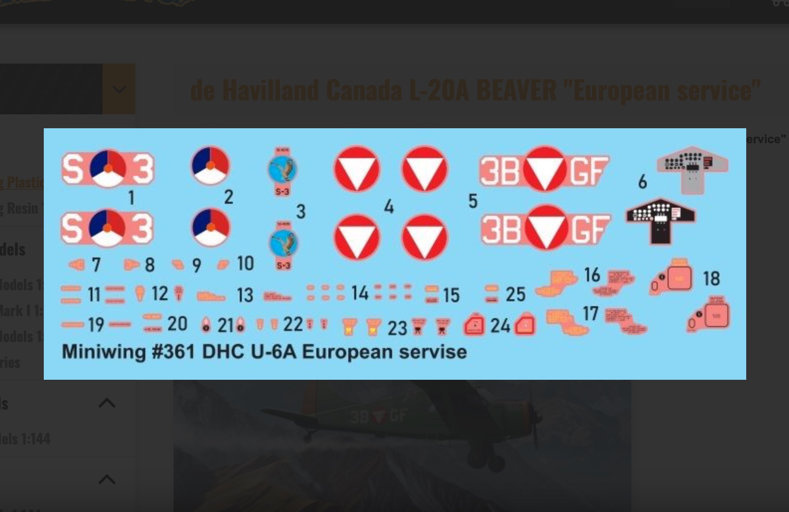 Miniwing-Plastic - 1/144 De Havilland Canada U-6A / L-20A Beaver European service 2Q/2023 1 kit boxed, 2 decal versions