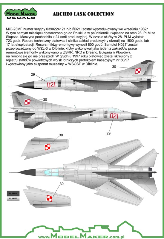 Model Maker - 1/48 Archeo Lask Collection. Archeo Lask Collection. 12 planes and helicopters from 32 Air Tactical Base Poland. A group of soldiers, modelers and aviation enthusiasts who are restoring aircraft once used in the Polish Air Force. The organization is non-profit and all the work is done outside of working hours. The collection currently includes twelve aircraft and helicopters and is located on the premises, and each one has its own unique stories. Many of them in his brilliant years served at the airport in Lask. The idea for this decals created on the fifth edition of the Lask Model Show. when it turned out that the number of models aspiring to the awards for the best model in the colors of the collection is low due to the lack of just a decal for these planes and helicopters. I suggested to solve this problem with set for the whole collection, what has been very favorably received by the Group.