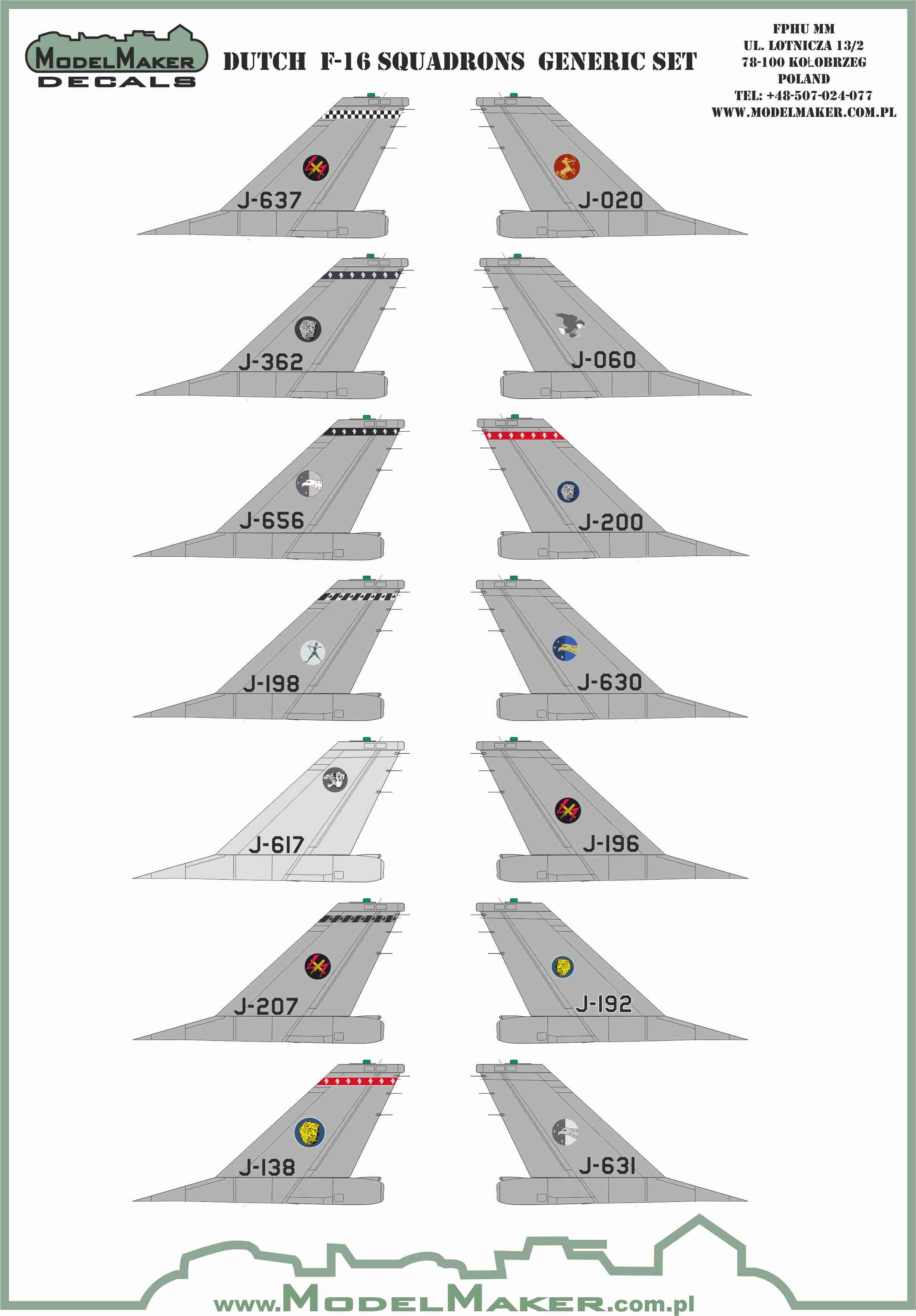 Model Maker - 1/72 Dutch F-16 Squadrons generic set