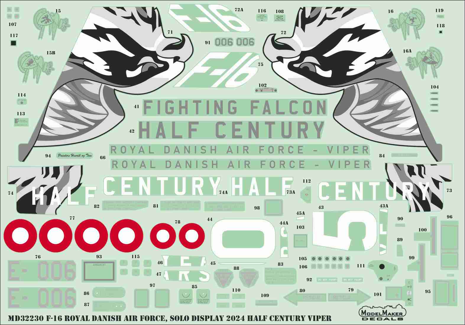 Model Maker - 1/48 General-Dynamics F-16AM Royal Danish Air Force, Solo Display 2024 Half Century Viper