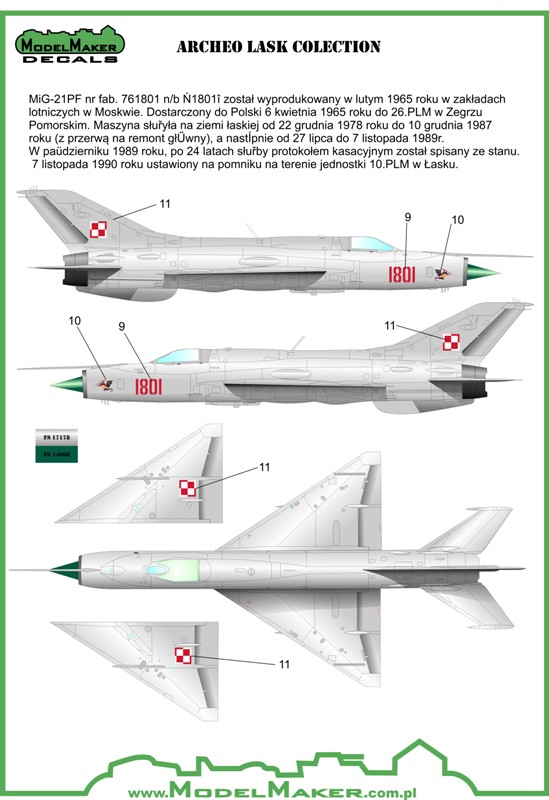 Model Maker - 1/72 Archeo Lask Collection. 12 planes and helicopters from 32 Air Tactical Base Poland. A group of soldiers, modelers and aviation enthusiasts who are restoring aircraft once used in the Polish Air Force. The organization is non-profit and all the work is done outside of working hours. The collection currently includes twelve aircraft and helicopters and is located on the premises, and each one has its own unique stories. Many of them in his brilliant years served at the airport in Lask. The idea for this decals created on the fifth edition of the Lask Model Show. when it turned out that the number of models aspiring to the awards for the best model in the colors of the collection is low due to the lack of just a decal for these planes and helicopters. I suggested to solve this problem with set for the whole collection, what has been very favorably received by the Group.