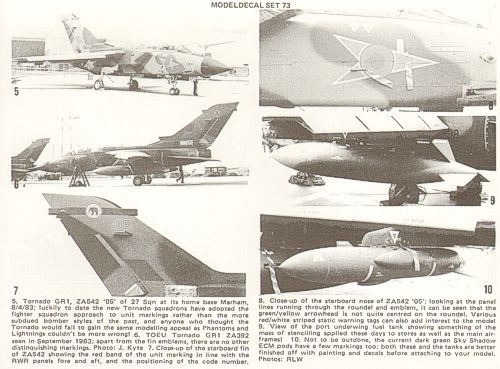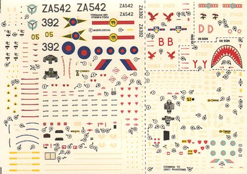 Modeldecal - 1/72 RAF Panavia Tornado GR.1 ZA542/05 27 Sqn Marham 1983,ZA392 TOEU Boscombe Down 1983, McDonnell-Douglas FGR.2 Phantom XV501/B Greenham Common 1983 or KV464/B Falklands 1983 both 23 Sqn, V406/D 29 Sqn Conningsby,XT901/Y 56 Sqn Wattisham, all 3 tone grey,