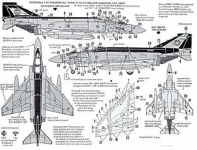 Modeldecal - 1/72 RAF McDonnell-Douglas FG.1 Phantom XV574/Z 111 Sqn 1985/87 with black spine and fin, two versions. Panavia Tornado F.3. ZE203/BA or ZE208/BT 29 Sqn, ZE156/AM or ZE158/AK 229OCU/65Sqn all 1987,