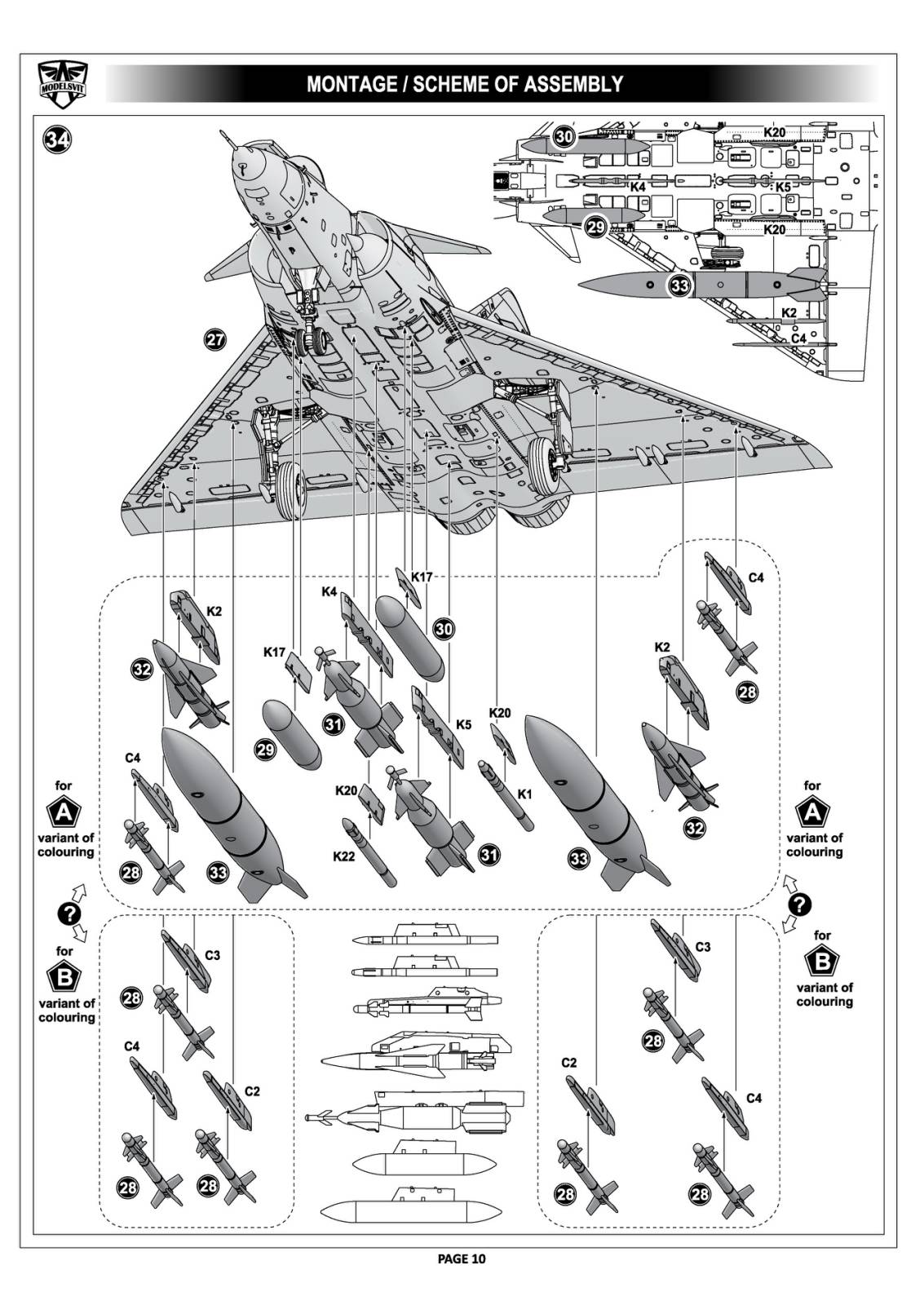 3 new plastic frames ( containing external fuel tanks, 'air-to-air' and 'air-to-ground'missiles, bombs, laser designator pod and Flir pod)