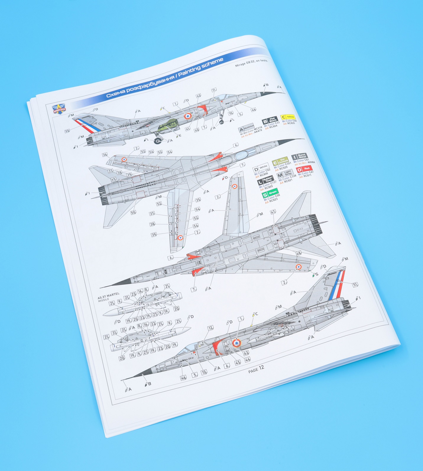 Modelsvit - 1/72 Dassault Mirage G8 02 variable-geometry fighter. The kit is based on 1/72 Mirage G8.01 Art.No: MSVIT72056, where new sprues with fuselage nose section, canopy and missiles were added.Set includes:10 sprues with 280 plastic parts,2 x AS-37 'Martel' missile,PE sheet Adhesive painting masks, Decal sheet for 1 livery on the boxart