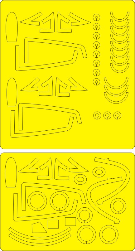 New Ware - 1/48 Grumman F9F-2P Panther EXPERT kabuki masks aircraft canopy including window seals and inner side masks, nose windows, wheels, position lights, air intakes, fuel tanks, yellow stripes on bombs (for Trumpeter kits)