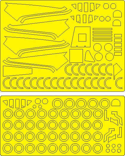 All windows including windows seal, other clear parts, wheels, air intakes, all ochre details, yellow stripes on bombs (for Airfix AX12011 kits)