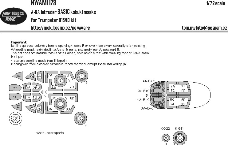 New Ware - 1/72 Grumman A-6A Intruder Basic kabuki masks aircraft canopy, wheels (for Trumpeter TU01640 kits)