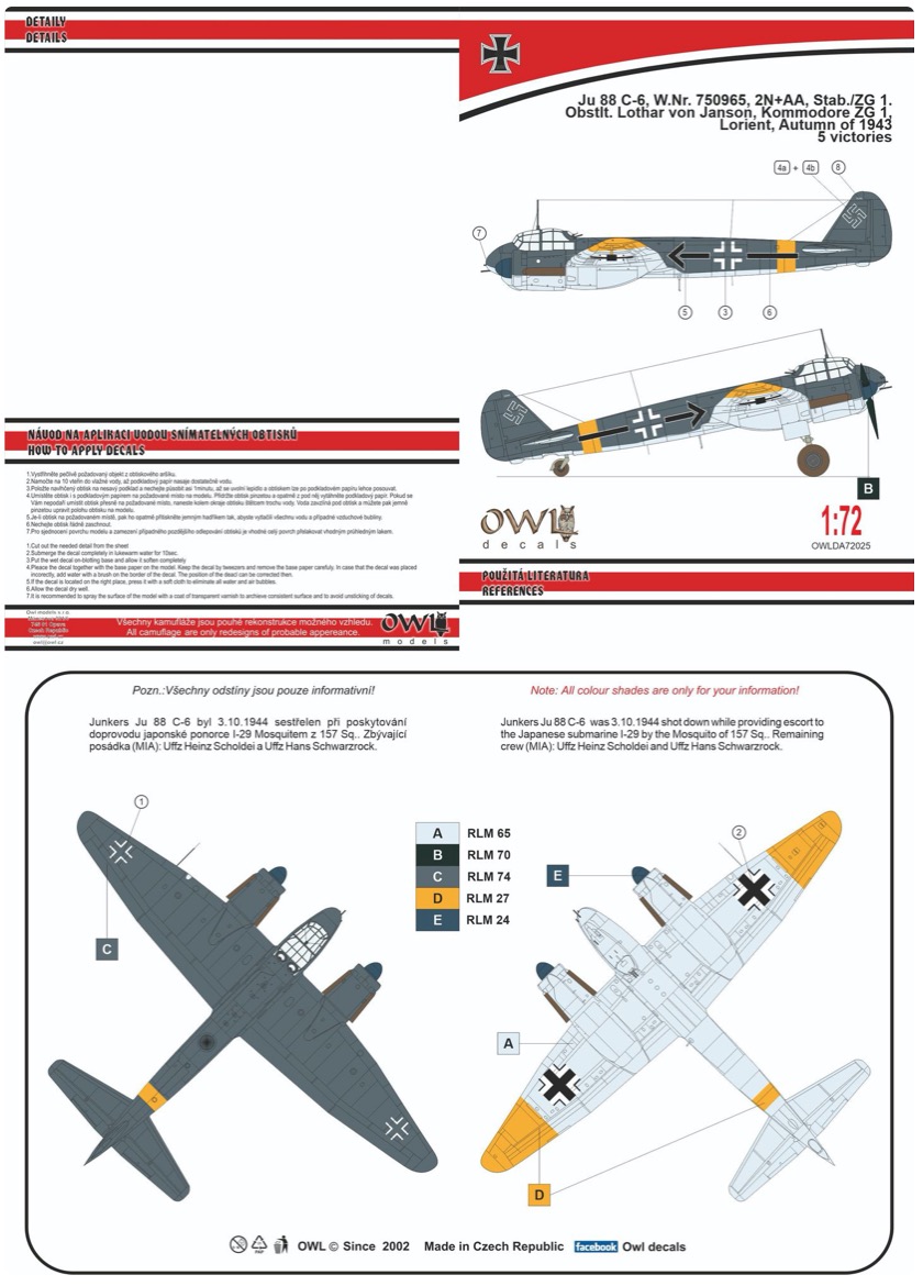 OWL Decals - 1/72 Junkers Ju-88C-6 (von Janson) dayfighter of Geschwaderkommodore ZG1