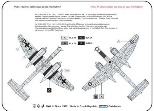OWL Decals - 1/72 Heinkel He 219 V133 DV+DI (catapult test machine)