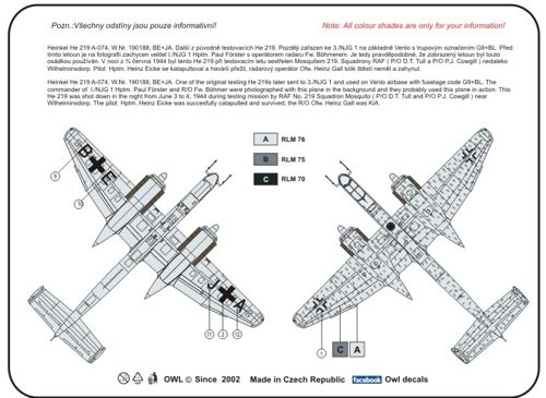 OWL Decals - 1/72 Heinkel He 219A-0 GE+JA (Forster)
