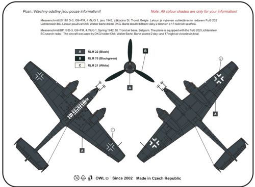 OWL Decals - 1/72 Messerschmitt Bf 110D FuG 202 (Barte)