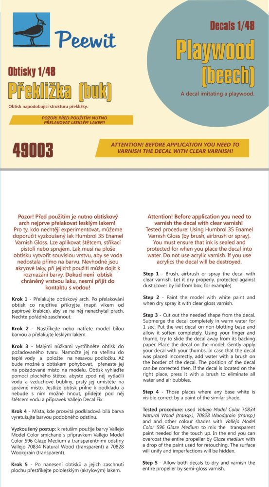 PEEWIT - 1/48 Decal Plywood beech