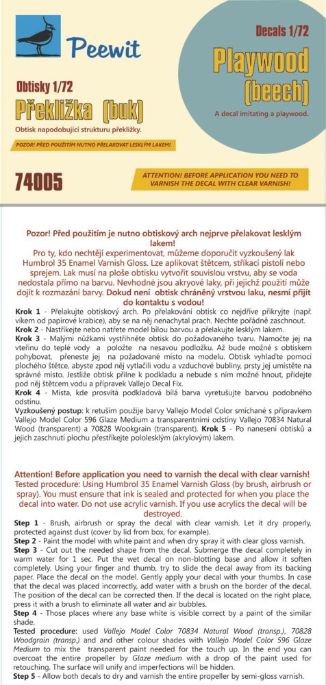 Peewit - 1/72 Plywood Beech (this decal must be varnished before it is used)