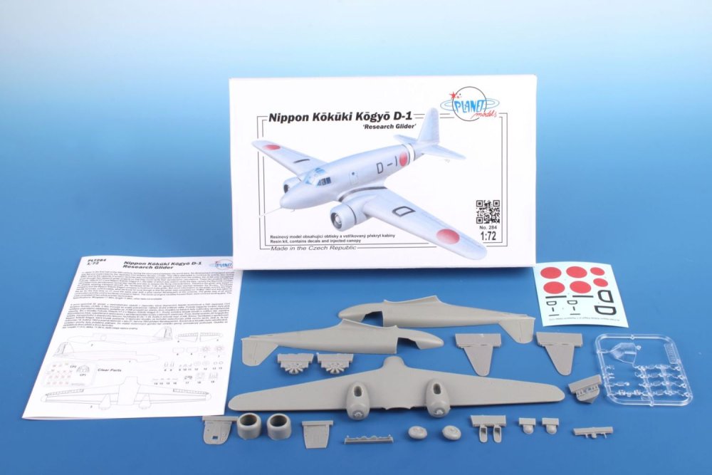 Planet - 1/72 Nippon Kokuki Kogyu D-1 Research Glider The flight characteristics of the Ki-54 transport aircraft were first checked using a full-scale research glider with semi-retracted under-carriage and no engines. This resin cast kit contains also injection moulded clear parts and a sheet of decals.