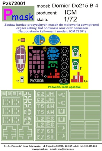 Pmask - 1/72 Dornier Do 215B-4 masks (for ICM ICM72301 kits)