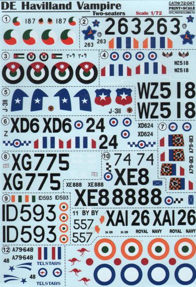 PRINT Echelle - 1/72 D.H. Vampire Two-seaters (wet decals)