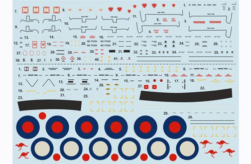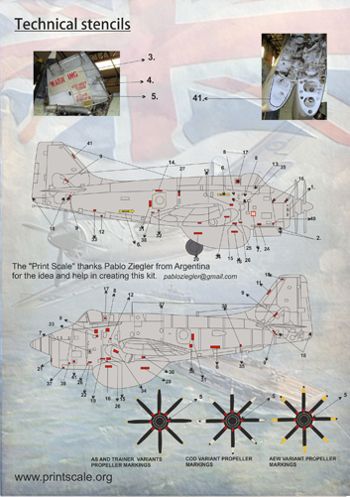 1. Fairey Gannet AS.1 XA340 / 292-R, 815 NAS, Hms Ark Royal, December 1957. Extra Dark Sea Grey and Sky finish. Propeller spinners painted in black and white. Serials, codes and lettering in black. "Harp" motif painted on both outer finlets, mirrored. Squadron chest under starboard cockpit. Type D roundels in all six positions.