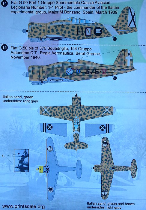 5. Fiat G.50 Part: 20 Gruppo, Cai Phone: 20 (MM5372) Belgium, November 1940 The aircraft carries a typical Italian G.50 camouflage. By car flew commander of the 20th Group Mario Bonsai. The group was part of the Italian Corps, which operated in the neighborhood of La Mashnov winter 1940/1941.