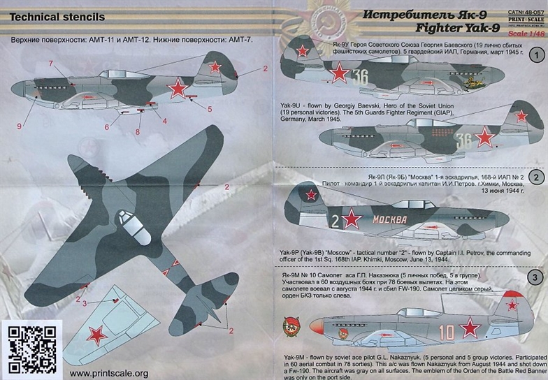 PRINT Echelle - 1/48 Yak-9 Fighter (wet decals)