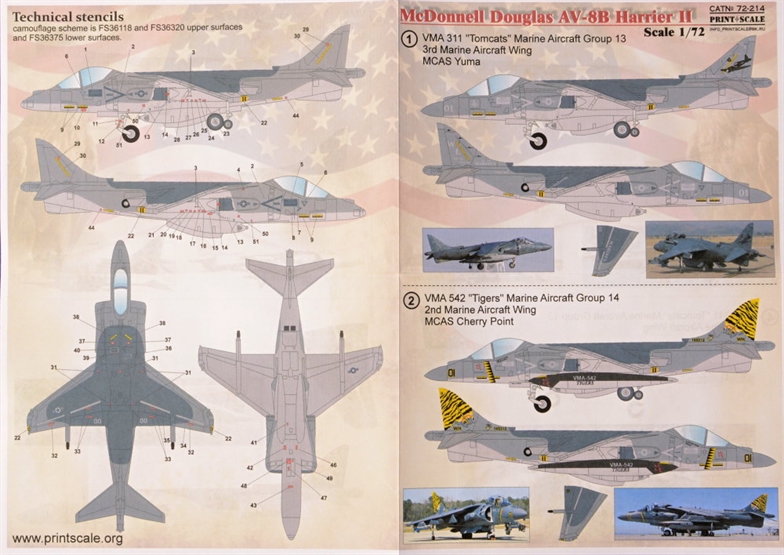 PRINT Echelle - 1/72 Douglas AV-8B Harrier II (wet decals)