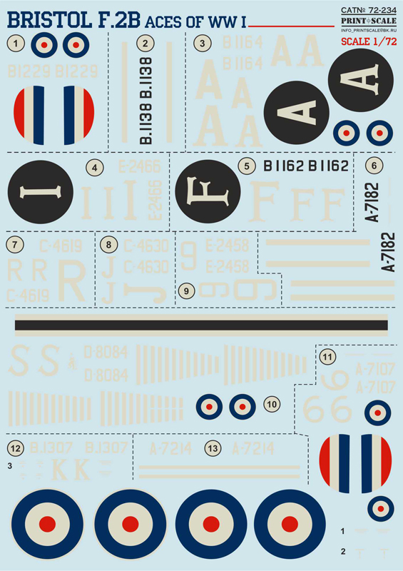 PRINT Echelle - 1/72 Bristol F.2B Aces of WWI (wet decals)