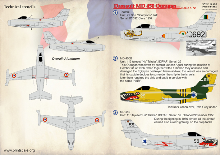 PRINT Echelle - 1/72 Dassault MD 450 Ouragan (wet decals)