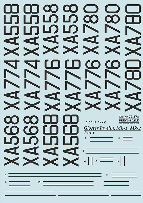 Print Scale - 1/72 Gloster Javelin Mk.1 Mk.2 Part 1 / 72-370 /