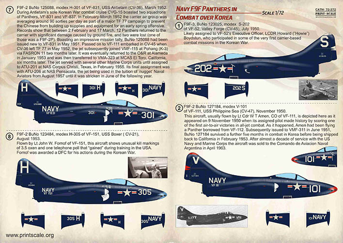Print Scale - 1/72 Navy Grumman F9F-2/F9F-3 Panthers in Combat over Korea / 72-372 /