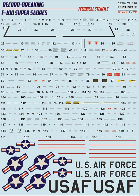 PRINT Echelle - 1/72 F-100 Super Sabres technical stencils decal