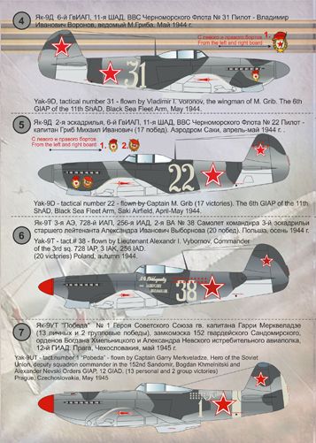 4. Yak-9D, tactical number 31 flown by Vladimir I. Voronov, the wingman of M. Grib. The 6th Giap of the 11th ShAD, Black Sea Fleet Arm, May 1944.