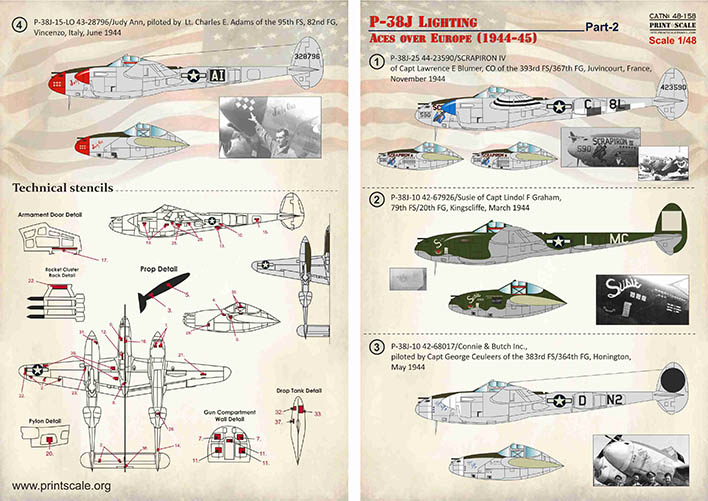 Print Scale - 1/48 Lockheed P-38J Lighting Aces over Europe (1944-45) Part 2