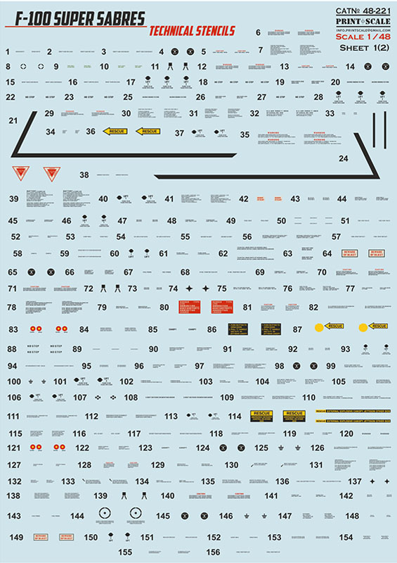 Print Scale - 1/48 Noth-American F-100D/F-100F Super Sabre technical stencils