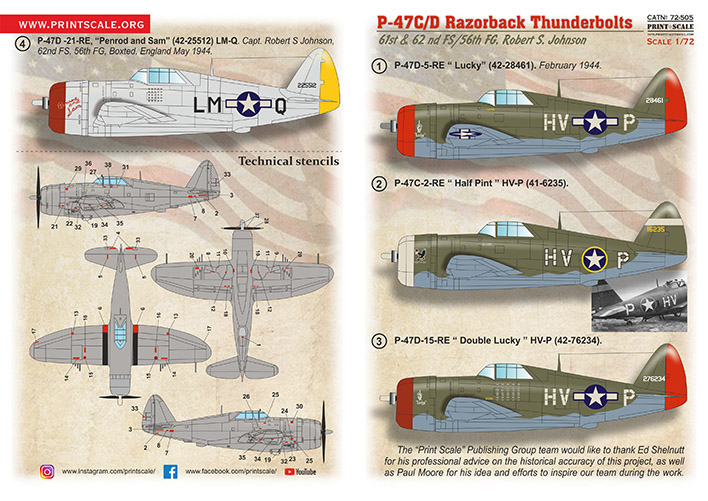 Print Scale - 1/72 Republic P-47C/P-47D Thunderbolt Razorback Robert S. Jonson