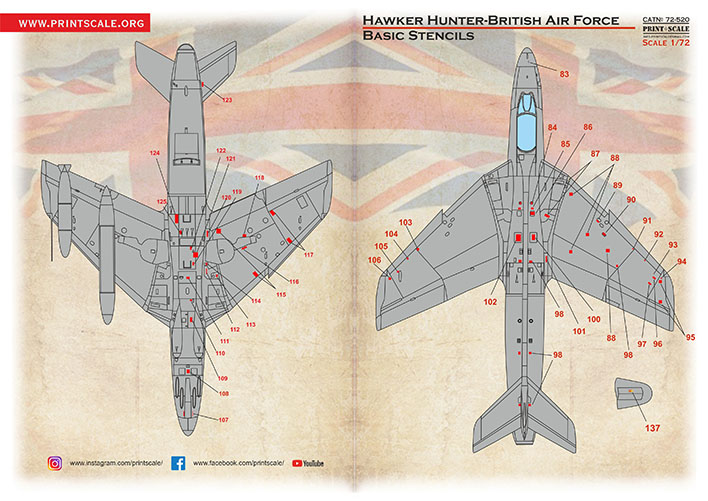 Print Scale - 1/72 Hawker Hunter Raf basic stencil