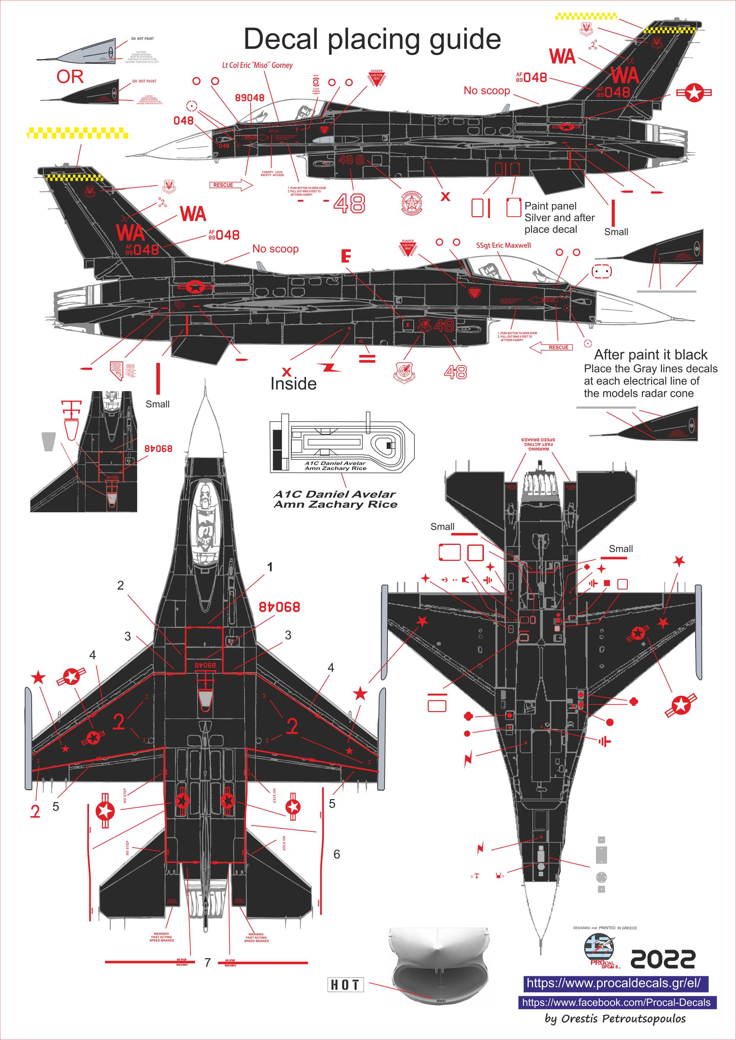 Procal Decals - 1/32 64TH Aggressors F-16 Wraith PAINT. The aircraft painted in the new 'Wraith' aggressor paint scheme was aircraft number 48, an F-16C Block 42. This F-16 was already in Air Force inventory, but is new to the 57th Wing's 57th Adversary Tactics Group (57th ATG). The 57th Atg contains the 64th Aggressor Squadron, to which the new 'Wraith' F-16C Block 42 is attached.